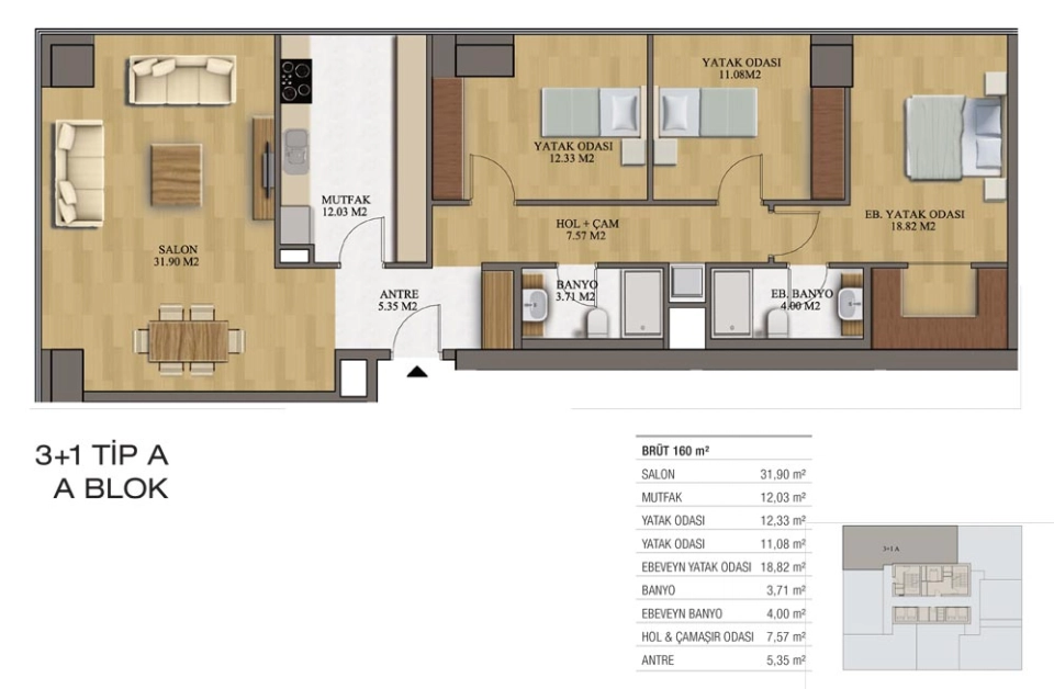 | Flat | 3 | 160 | ₺750,000 |