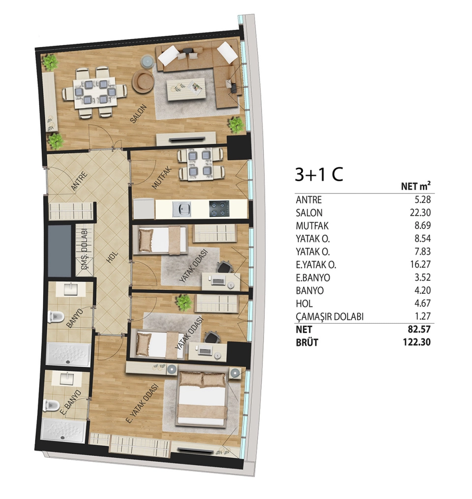 - The special amenities of the project are an outdoor swimming pool, Turkish bath, sauna, sports club, cafe and restaurant for residents, parking, and 24-hour security.