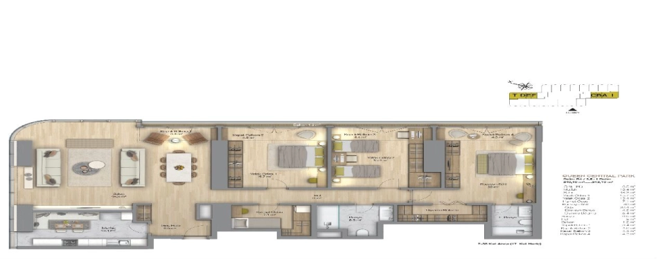 این ملک شامل یک ساختمان است که در زمینی به مساحت 170000 متر مربع ساخته شده است و همچنین شامل 1257 واحد مسکونی با تیپهای 0+1 تا 3+1 می باشد.