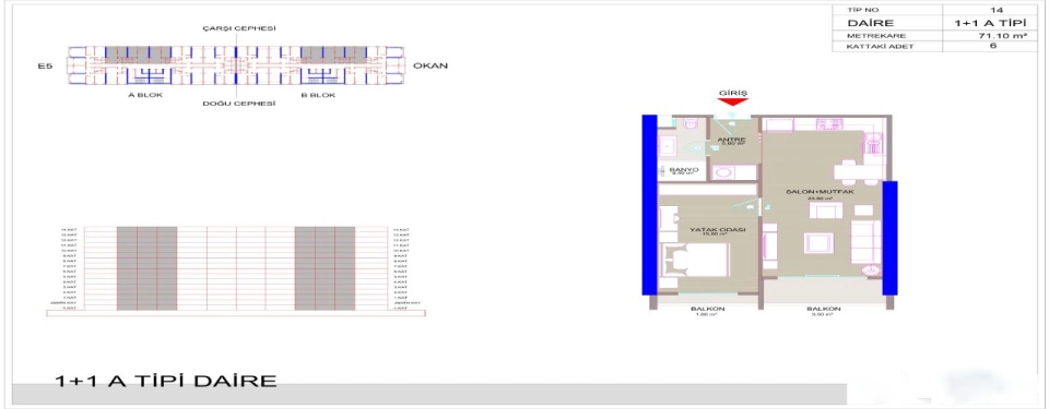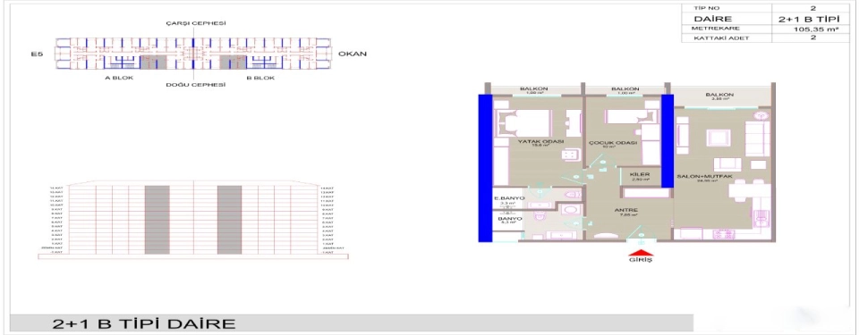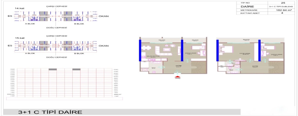 | Type | Yatak Odaları | Area m² | Fiyat |