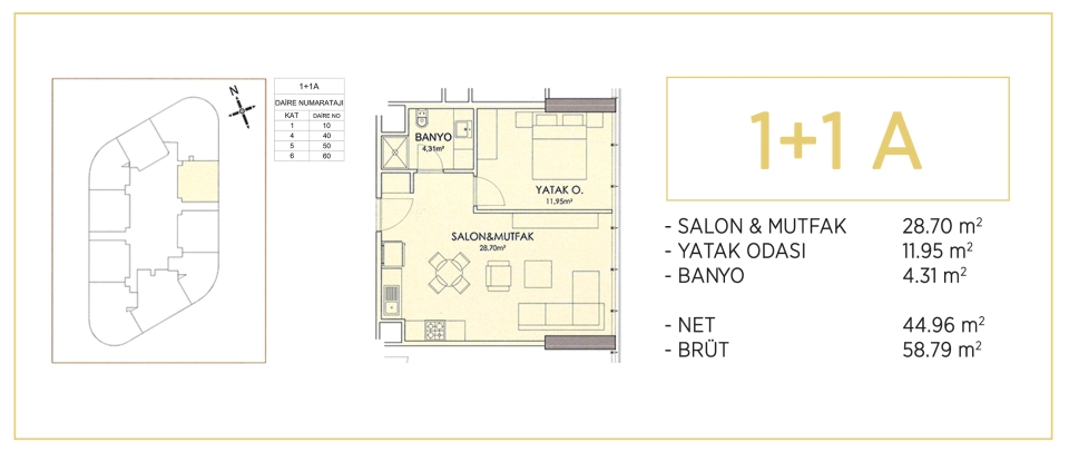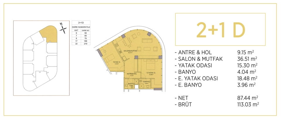 | Type | Yatak Odaları | Area m² | Fiyat |